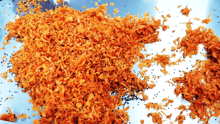 After several hours of waiting for the ingredients to attain equilibrium, the product now is spread into trays for drying.